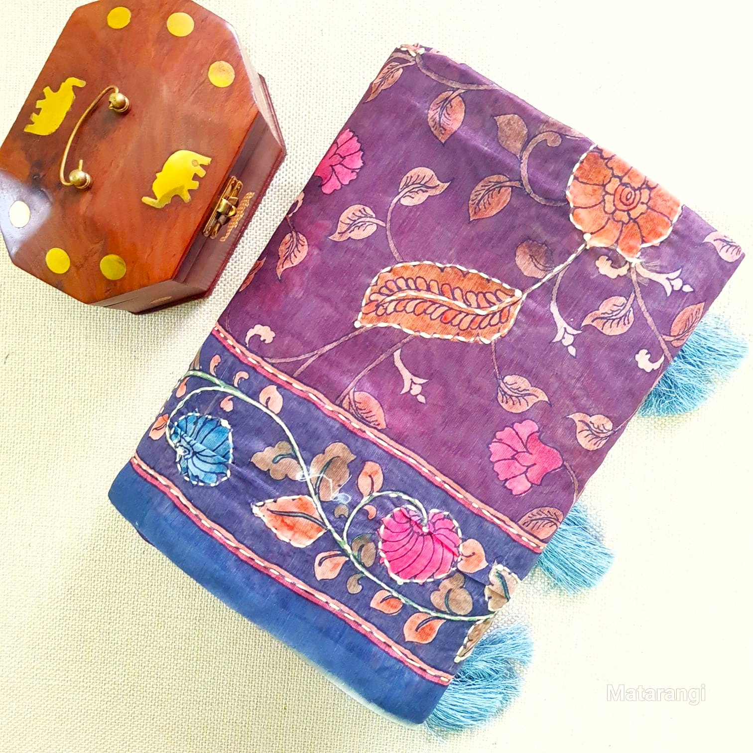 Matarangi Blue Kalamkari Kantha Chanderi Saree