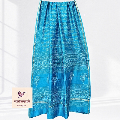 Matarangi Sea Blue Hand Block Printed Organic Chanderi Silk Saree