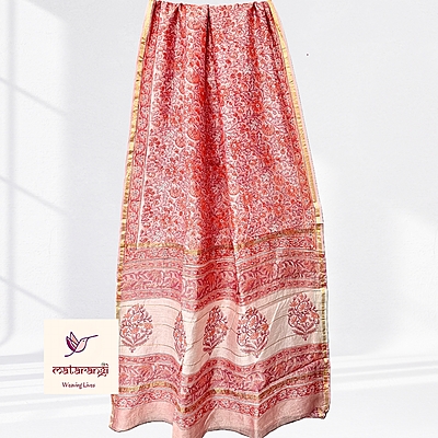Matarangi Pink & Red Hand Block Printed Organic Chanderi Silk Saree