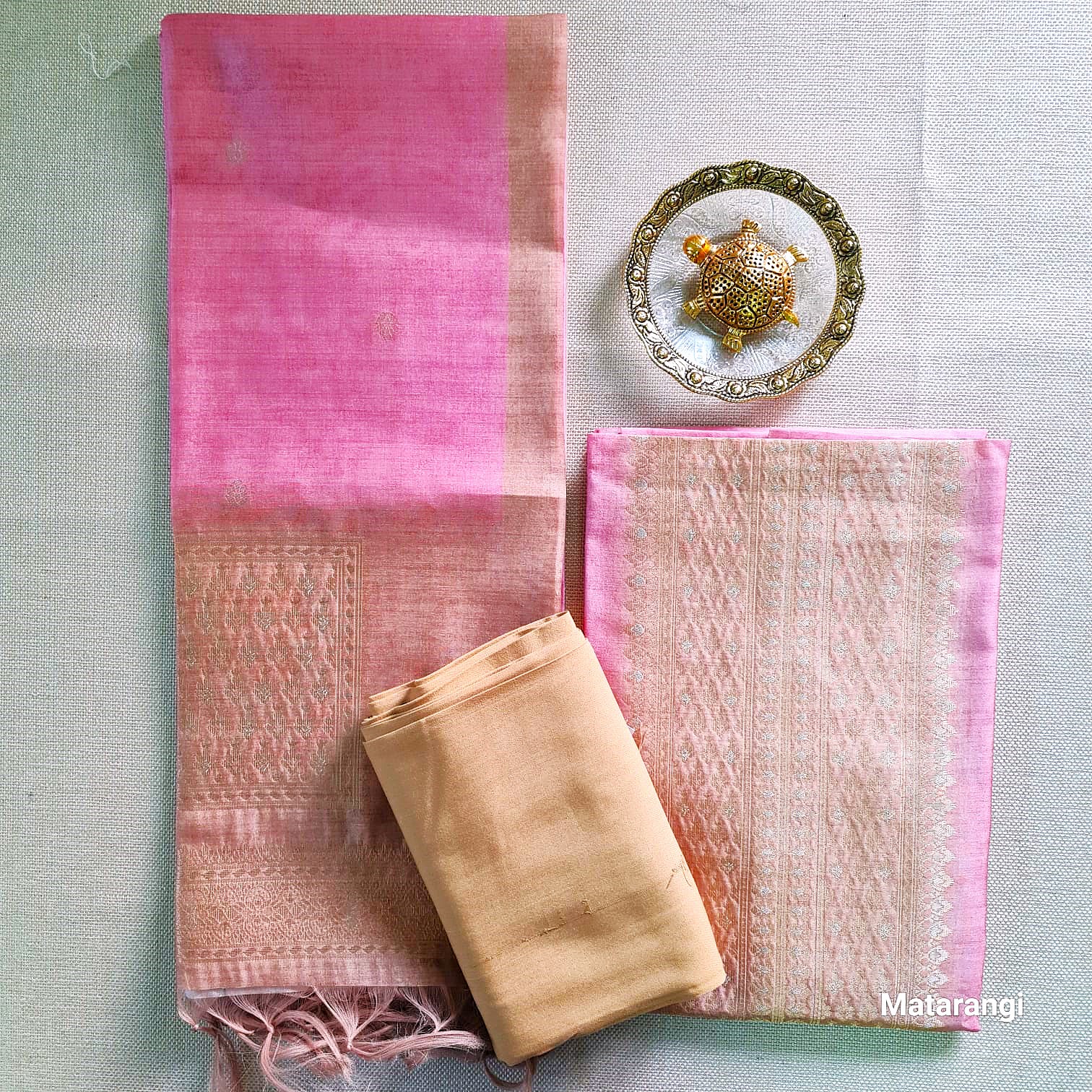 Pastel Pink Tussar Salwar Material with Banarasi Weave
