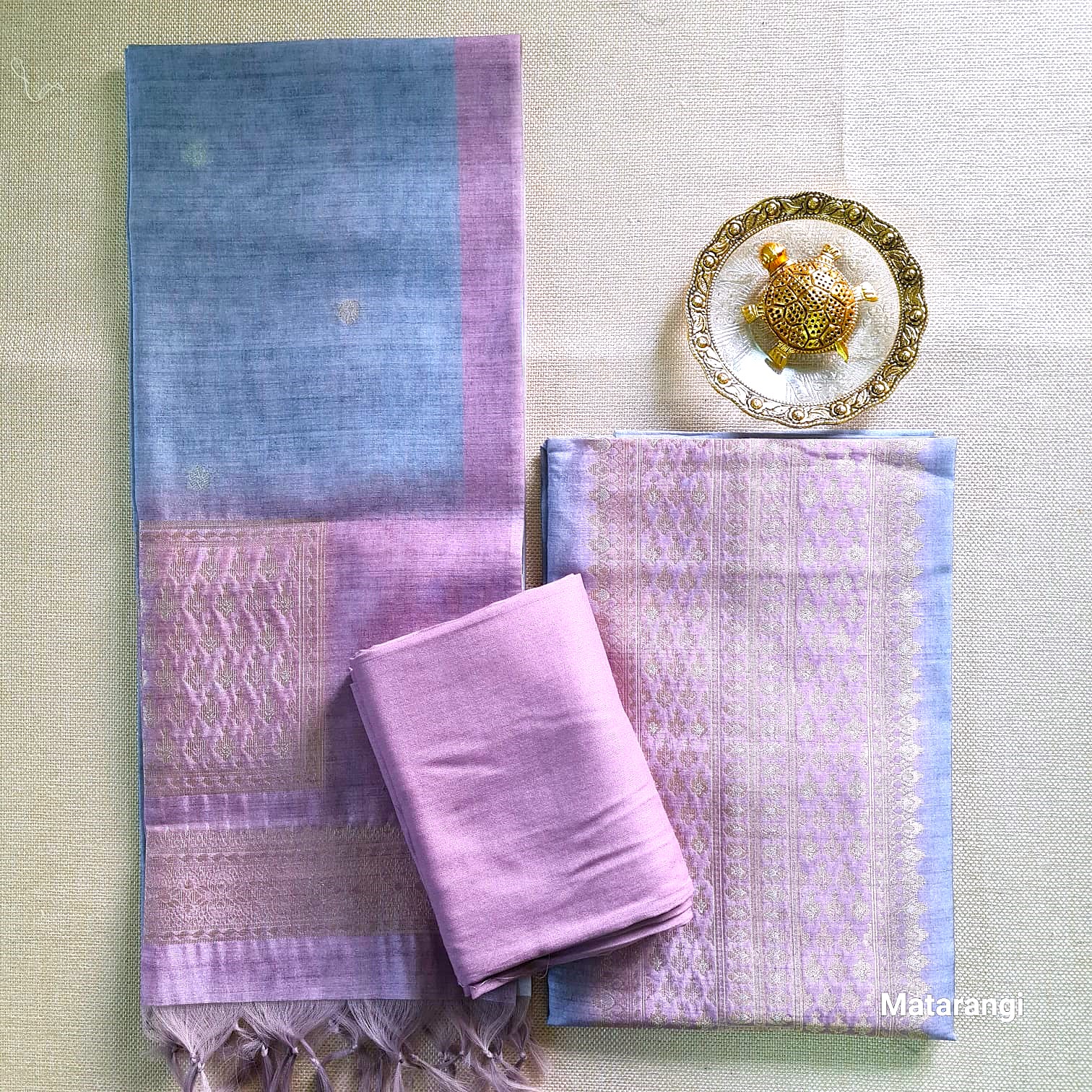 Pastel Blue Tussar Salwar Material with Banarasi Weave