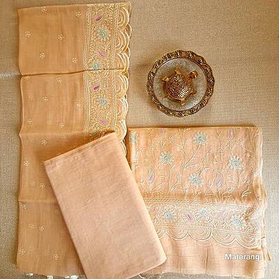Matarangi Light Brown Embroidered Mul Chanderi Salwar Material