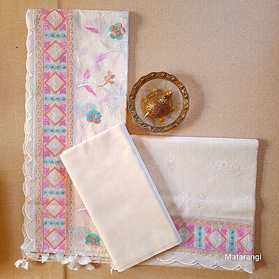 Matarangi Off White Embroidered Mul Chanderi Salwar Material