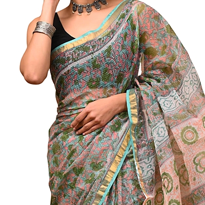 The specialty of Kota Doria sarees lies in their weaving technique. They are traditionally handwoven on a traditional pit loom called a "khaddi" using a combination of cotton and silk yarns. The unique weave of these sarees is what gives them their airy and breathable quality, making them comfortable to wear, especially during summers.