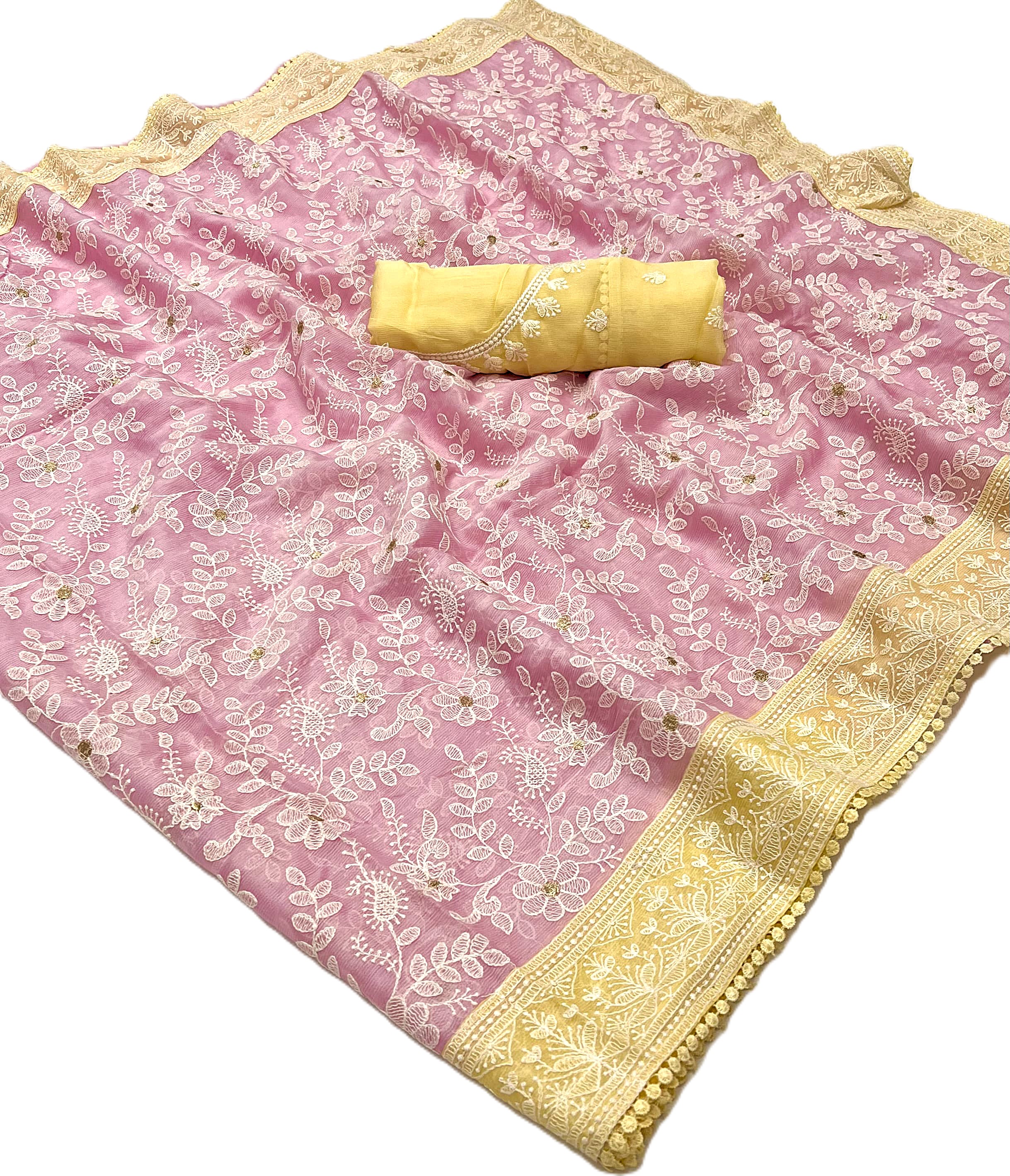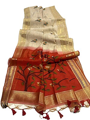 Matarangi Handloom Tissue Floral Embroidered Kerala Set Saree