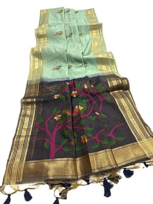 Matarangi Light Green Hand Block Printed Premium Maheshwari Silk Saree