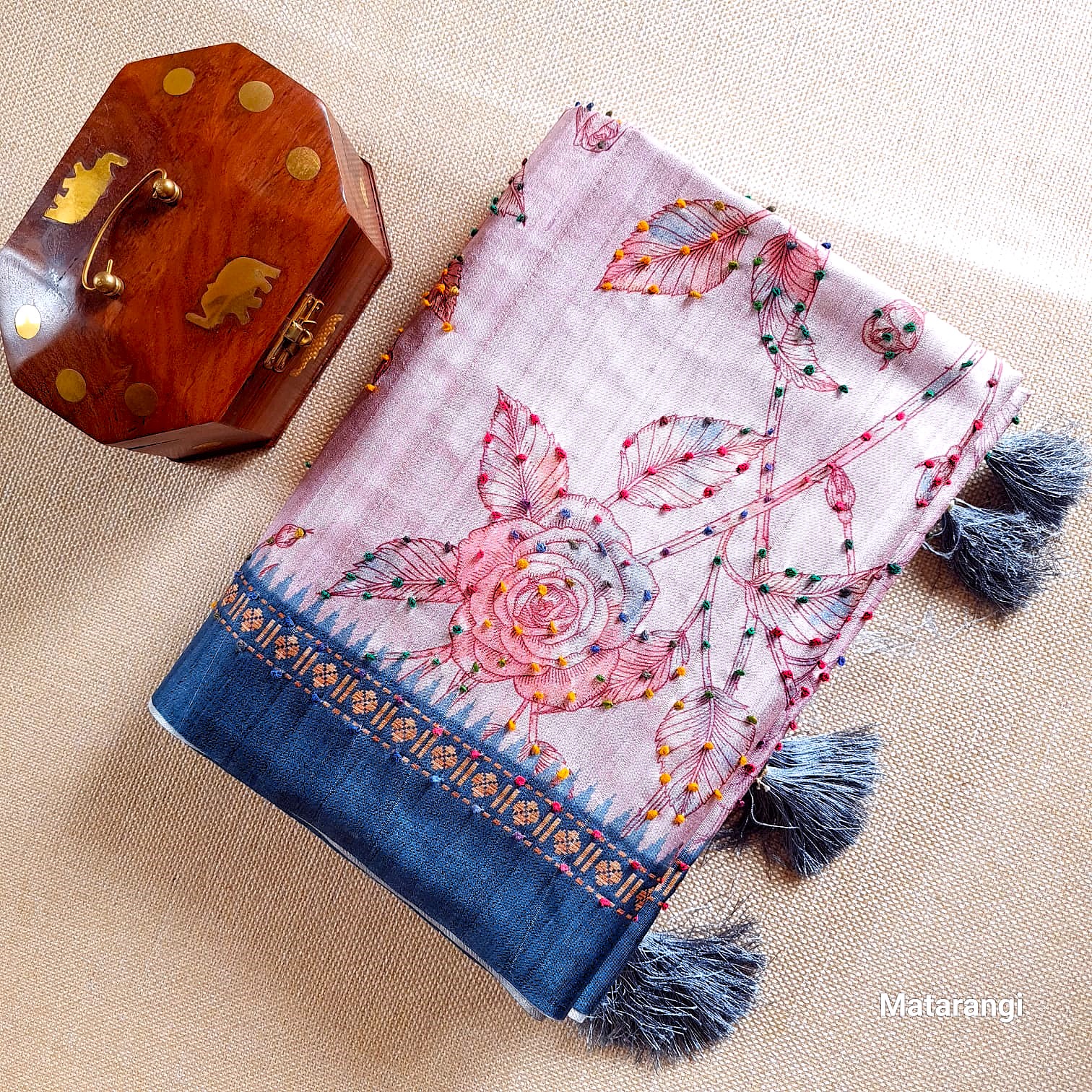 Matarangi Light Rose Blended Tussar French Knot Saree