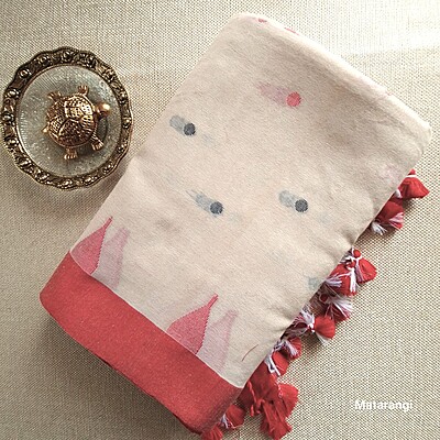 Brick Matarangi Red Hand Block Printed Organic Chanderi Silk Saree