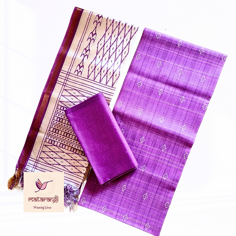 Matarangi Purple Printed Tussar Silk Salwar Material