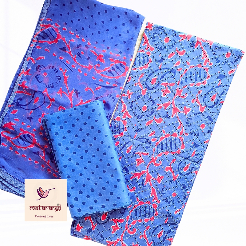 Matarangi Blue & Red Hakoba Cotton Salwar Material