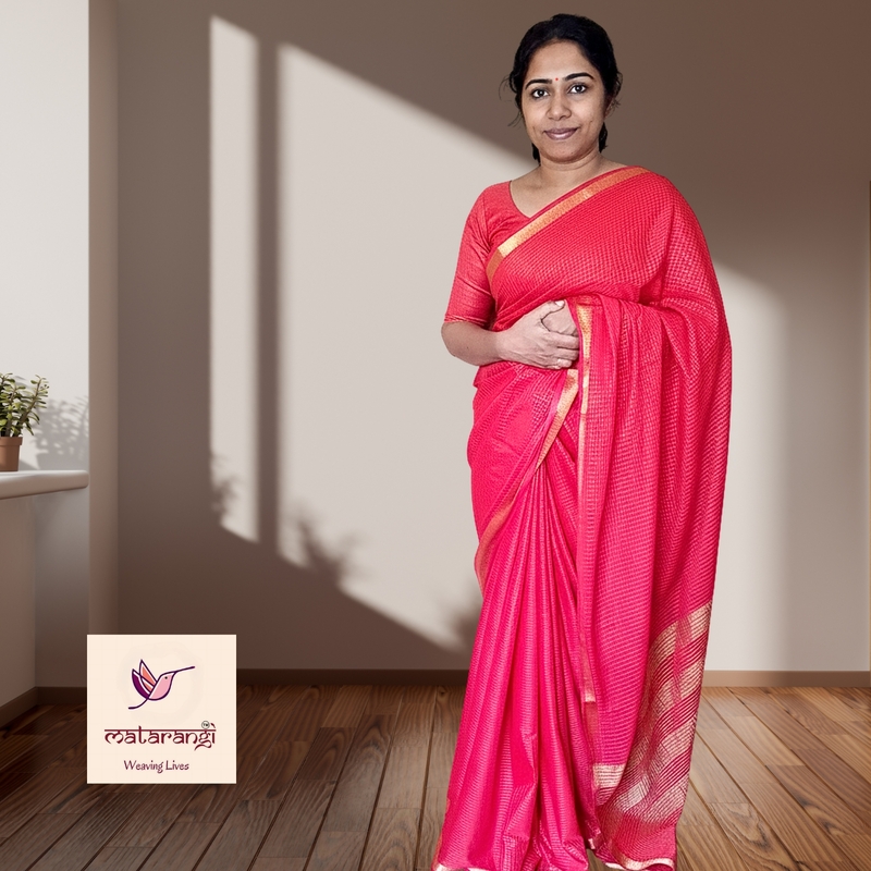 Matarangi Red Viscose Crepe Checked Pattern Saree