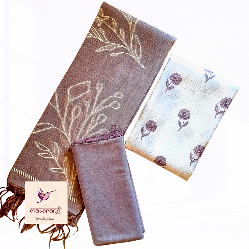 Matarangi Cream & Grey Silk Cotton Salwar Material