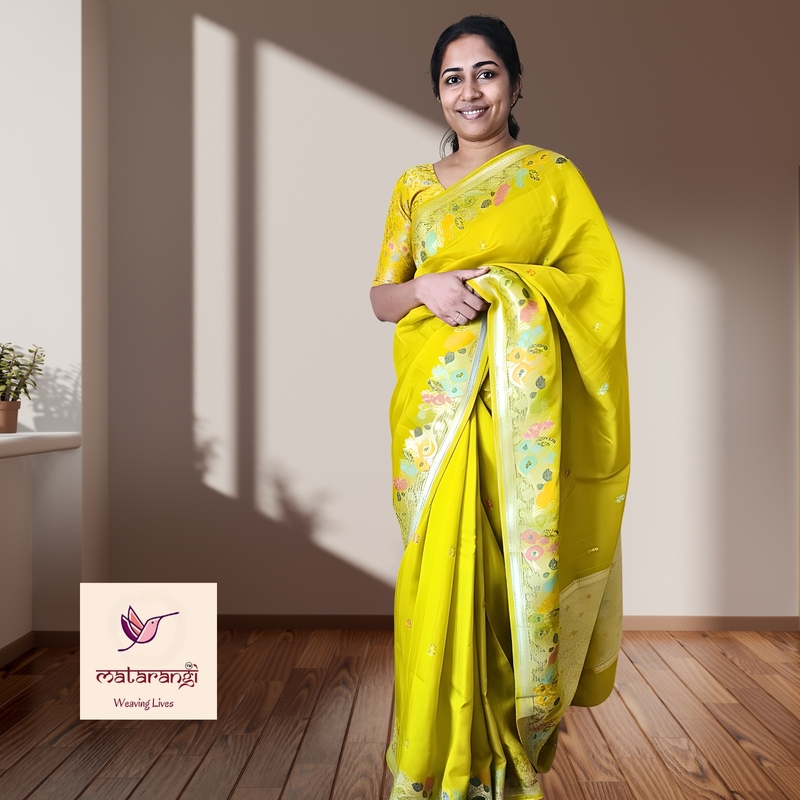 Matarangi Yellow Woven Tussar Silk Saree