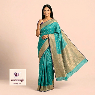 Matarangi Turquoise Blue Kaddi Jute Banarasi Saree