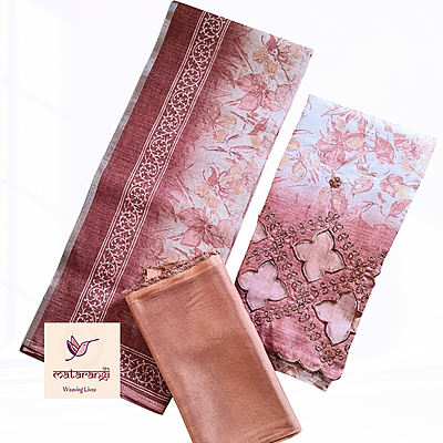 Grab our elegant unstitched salwar suit sets, perfect for casual and festive occasions. Crafted for comfort, this Pastel Brown Linen Silk unstitched salwar suit set is sure to win your heart.