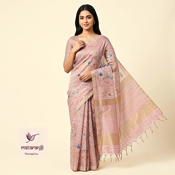 Matarangi Lavendar Printed Tussar Floral Saree