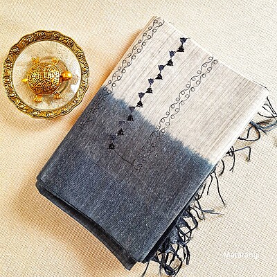 Matarangi Offwhite & Black Semi Tussar Embroidered saree