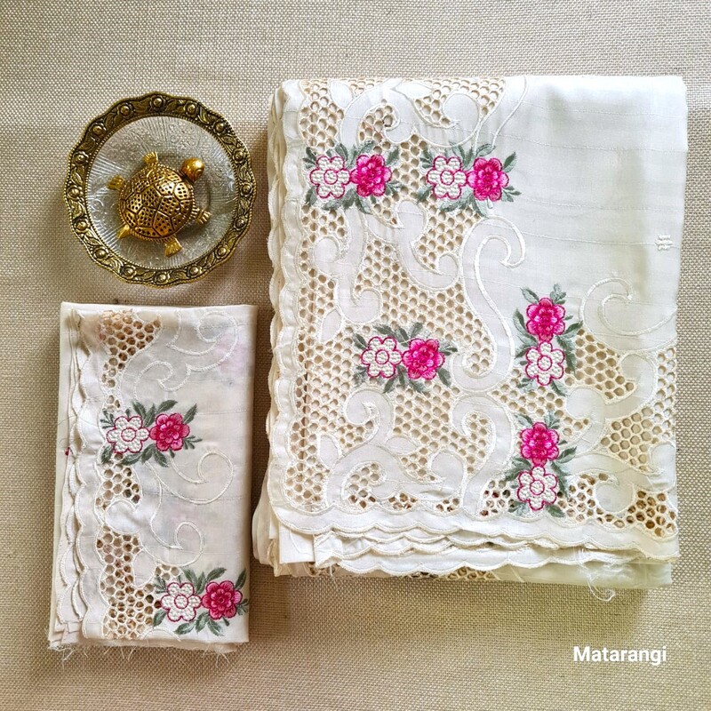 Saree Pattern: Cutwork floral embroidered motifs on the border