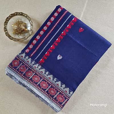Navy Blue Premium Handwoven Cotton Jamdani Saree