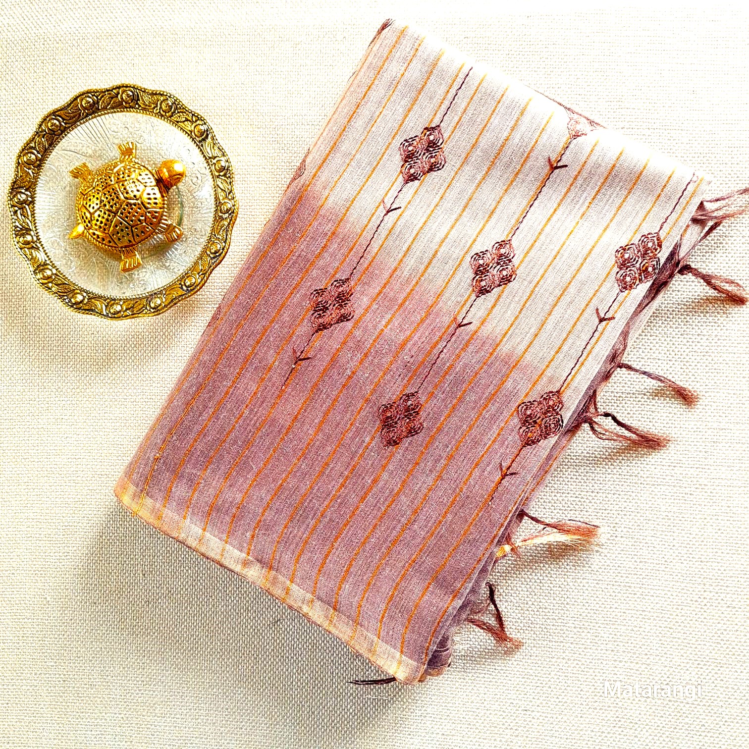 Matarangi Chocolate Brown Embroidered Semi Tussar Saree