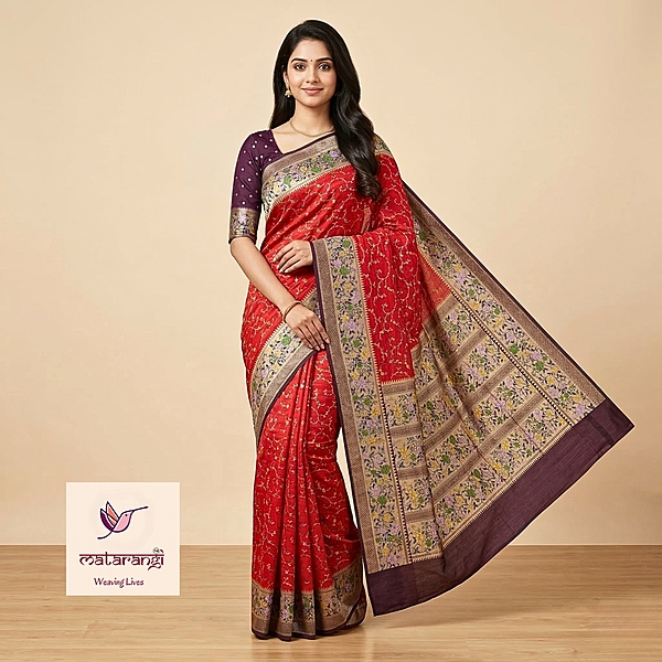 Colors may vary slightly due to lighting and screen settings. Images are AI-generated for representation purposes only, so the actual saree and blouse may have slight variations in print, pattern, motifs, and weave.