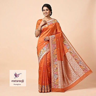 Matarangi Burnt Orange Meenakari Tussar Silk Saree