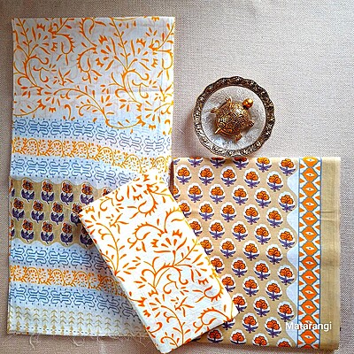 Hand block Print : There may be irregularities in the Hand Block print. They manifest as slight variations in the density of color, gentle shifts in pattern alignment, or the occasional imperfection in line definition. Rather than blemishes, they are the beauty and hallmark of a handmade masterpiece, weaving a tapestry of individuality into every inch of cloth.