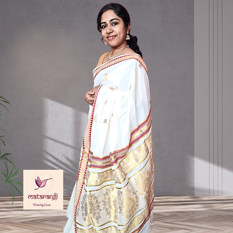 Matarangi Handloom Kerala Set Saree Red temple Border