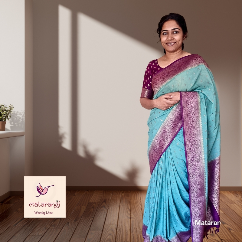 Matarangi Aqua Blue Khaddi Crepe Georgette Saree