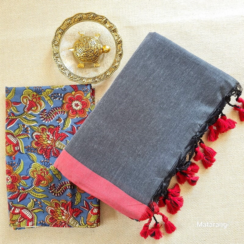 Grey Handloom Cotton Saree with Blouse
