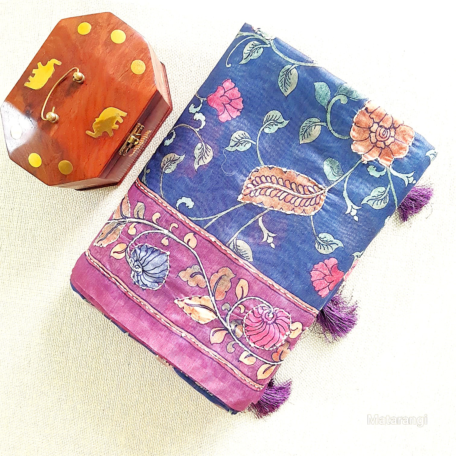 Matarangi Blue Kalamkari Kantha Chanderi Saree