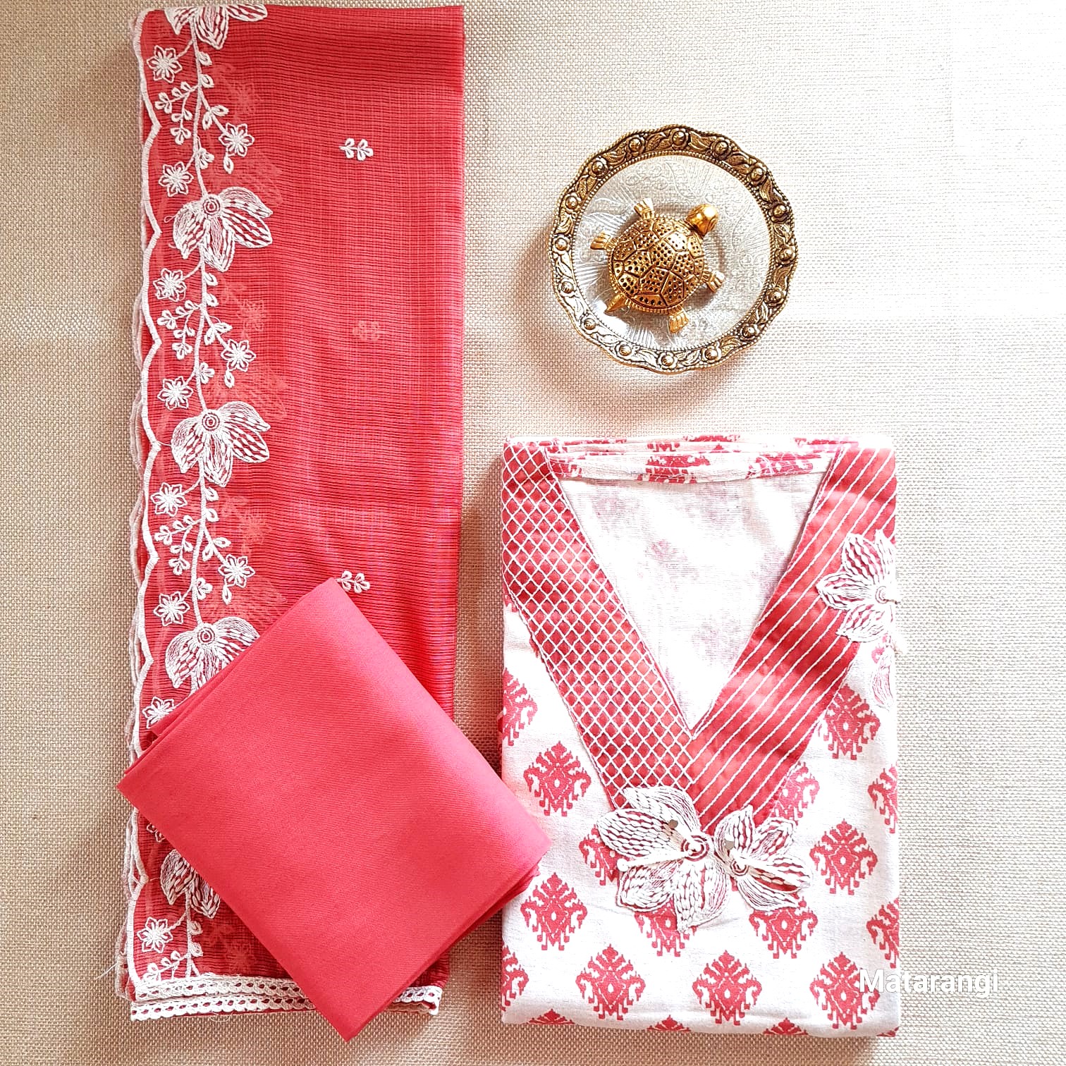 Cream and Red Pure Soft Cotton Salwar Material