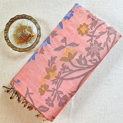 Step into the world of elegance with this Light Brown Bengal Cotton Handloom Saree. The Jamdani weave in Jaal pattern lifts the appeal of the saree and makes it a unique ensemble. Pair it with a blouse of your choice and cast an enchanting spell wherever you go.