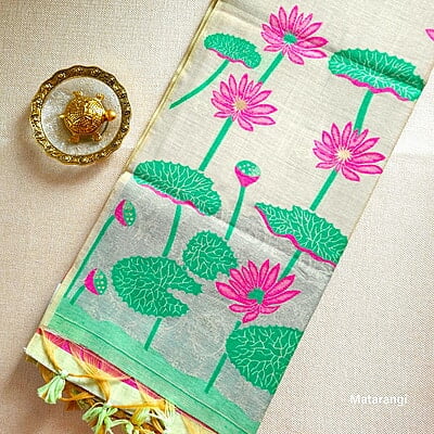 Matarangi Pastel Green Premium Munga Cotton Saree