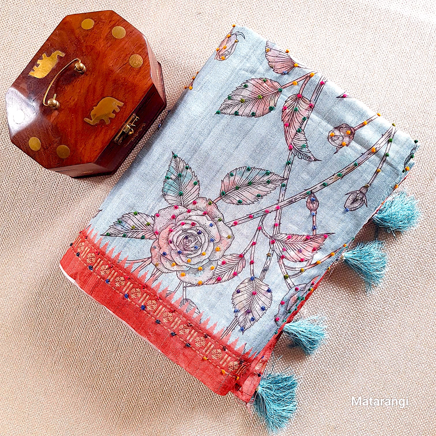 Saree Border: Printed with French Knot embroidery