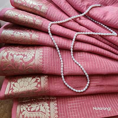Elevate your ensemble and ignite your inner radiance with this Pink Georgette Saree. The gold zari lines running throughout the saree and the intricate gold zari weave in the border of the saree make this georgette saree a unique ensemble. This saree is paired with a pink and gold zari running blouse.