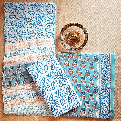 Matarangi Teal Blue HB printed Jaipur Cotton Salwar Material