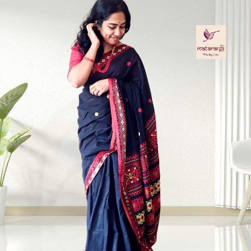 Matarangi Black Handloom Muslin Cotton Jamdani Saree