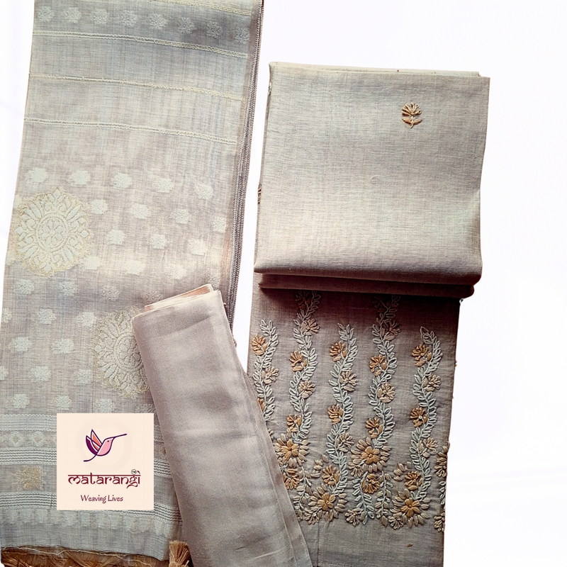 Matarangi Beige Khadi Silk Cotton Jamdani with Handstitch Salwar Material
