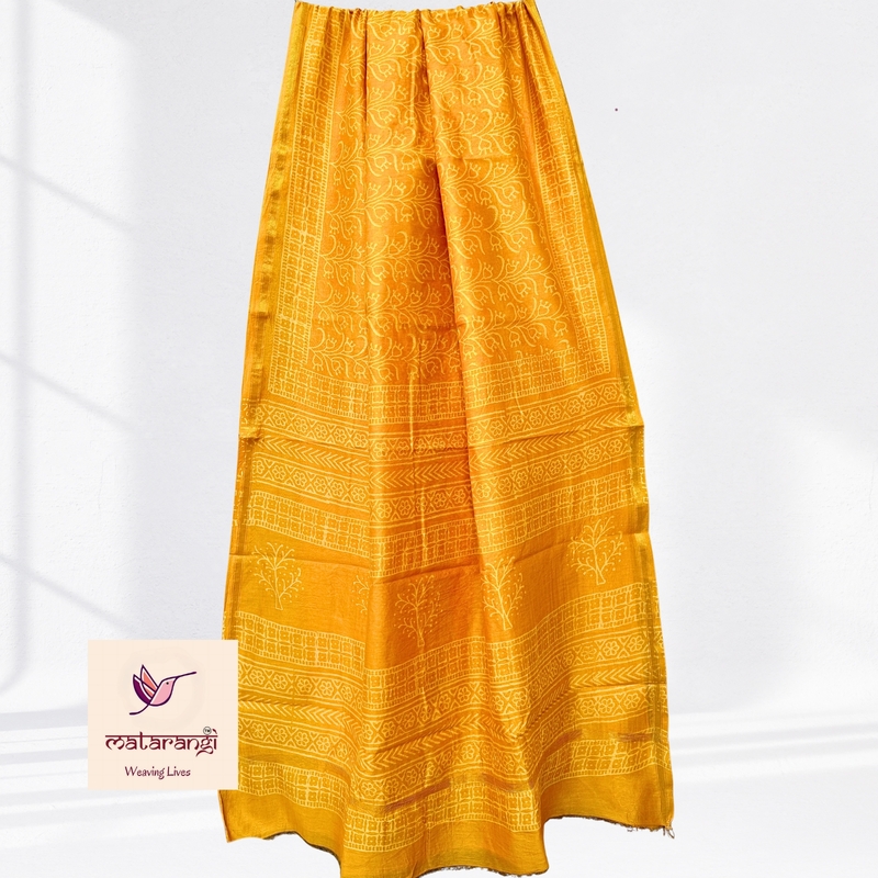 Matarangi Golden Yellow Hand Block Printed Organic Chanderi Silk Saree