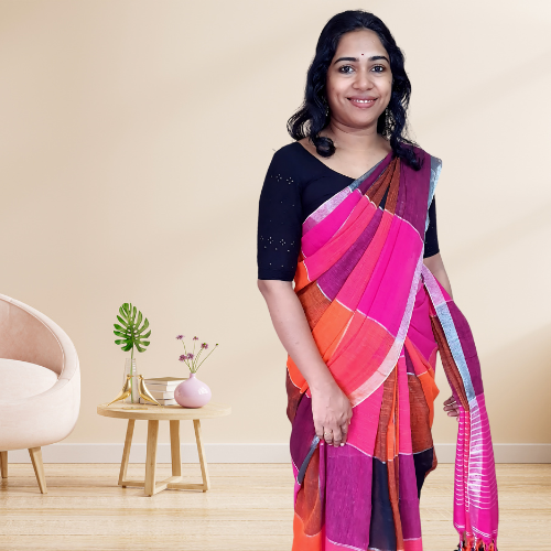 Matarangi Magenta Multicoloured Handloom Pure Linen Saree