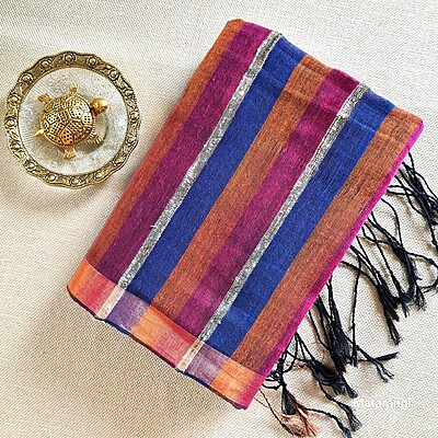 Matarangi Magenta & Blue Striped Pure Organic Handloom Linen Saree